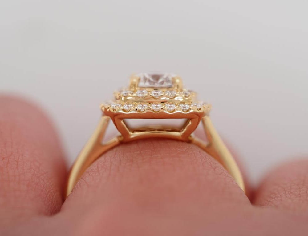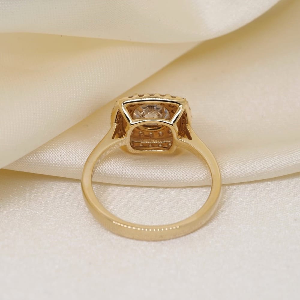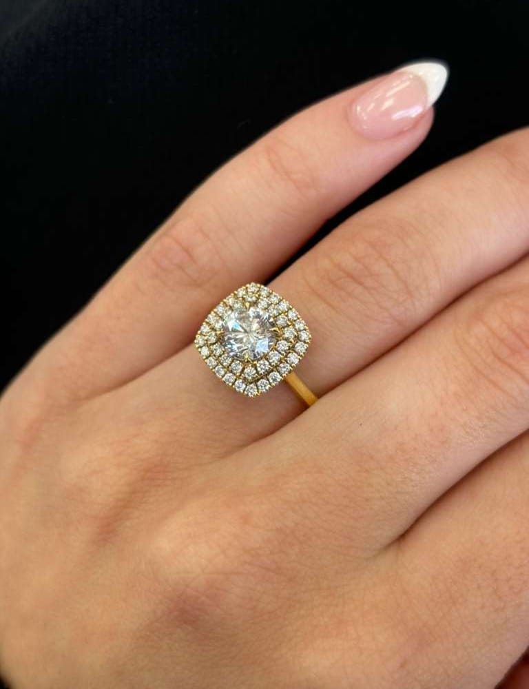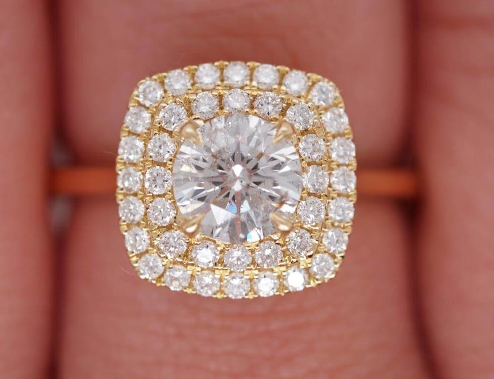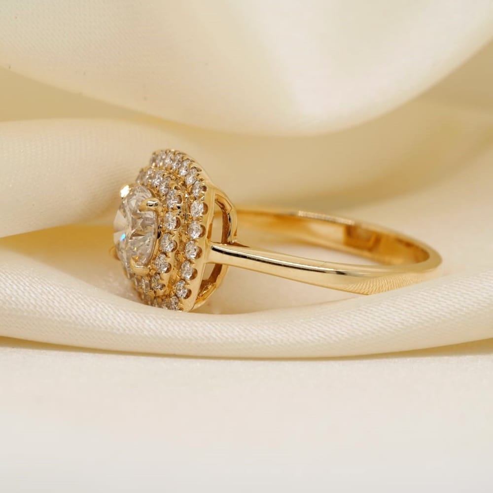 1.48 ct tw Double HaloRund Brilliant Cut Diamond 18K Yellow Gold Engagement Ring