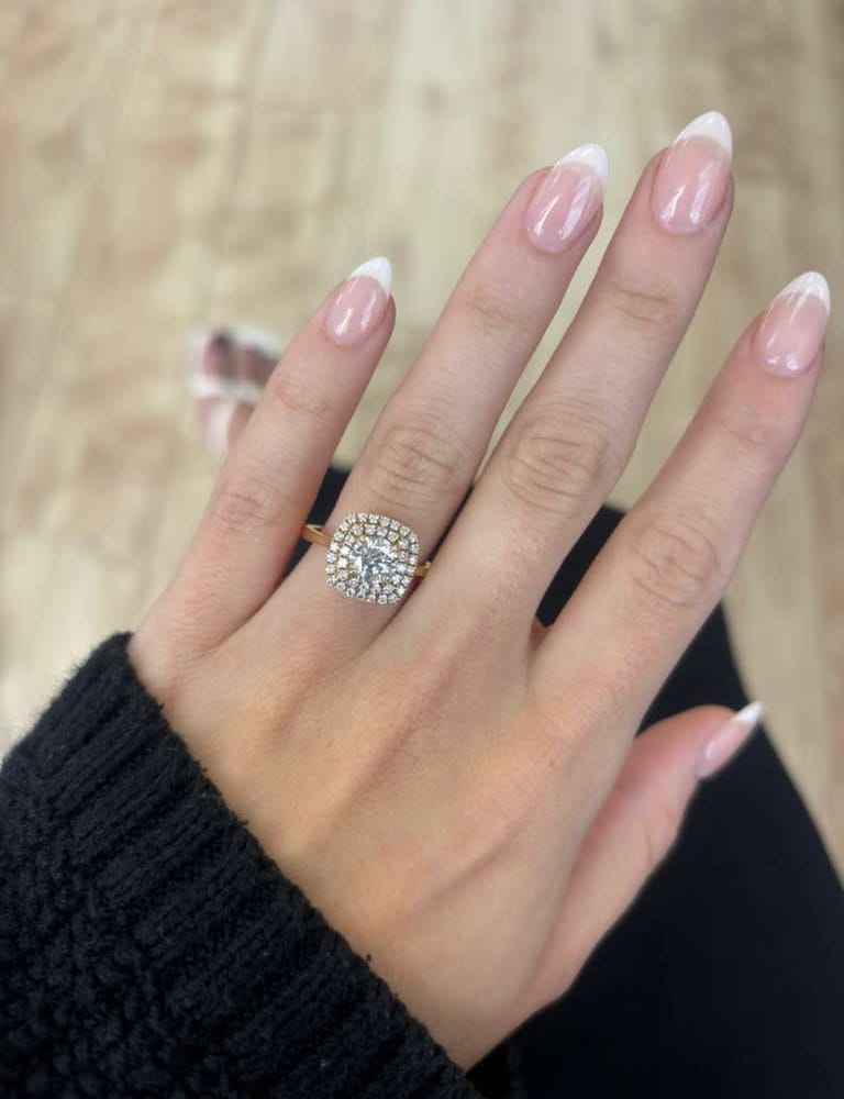 1.05 ct Round brilliant cut diamond center accented with a 0.43 ctw double halo.