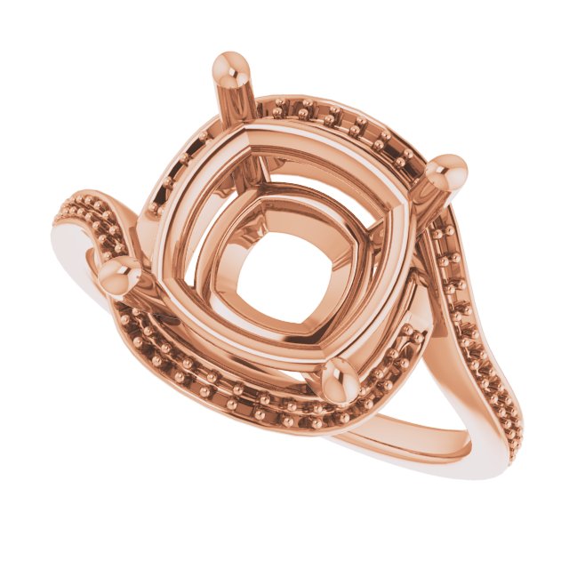 Engagement Ring / Semi-Set / 14K Rose / 10 X 10 Mm / Polished / Bypass Halo-Style Engagement Ring Mounting / G-H SI1