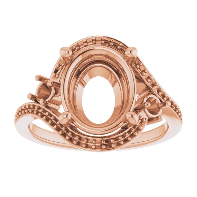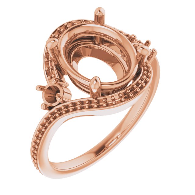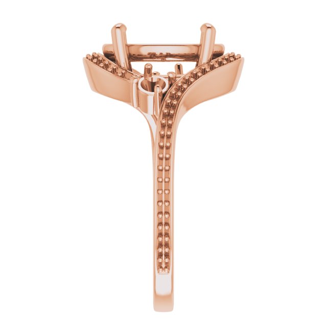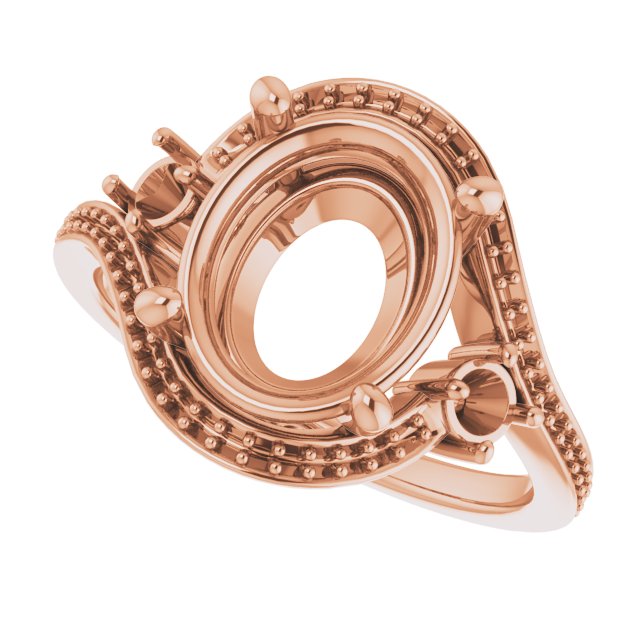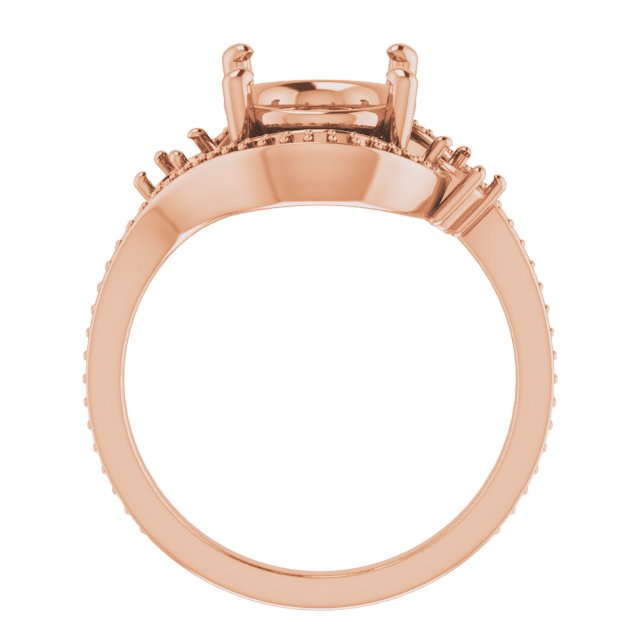 Engagement Ring / Semi-Set / 14K Rose / 11 X 9 Mm / Polished / Bypass Halo-Style Engagement Ring Mounting / G-H SI1