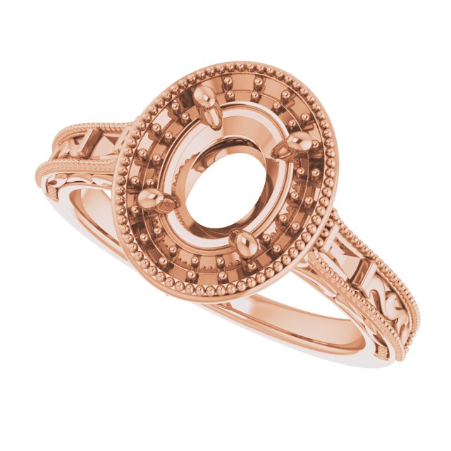 Engagement Ring / Unset / 14K Rose / 8 X 6 Mm / Polished / Engagement Ring Mounting