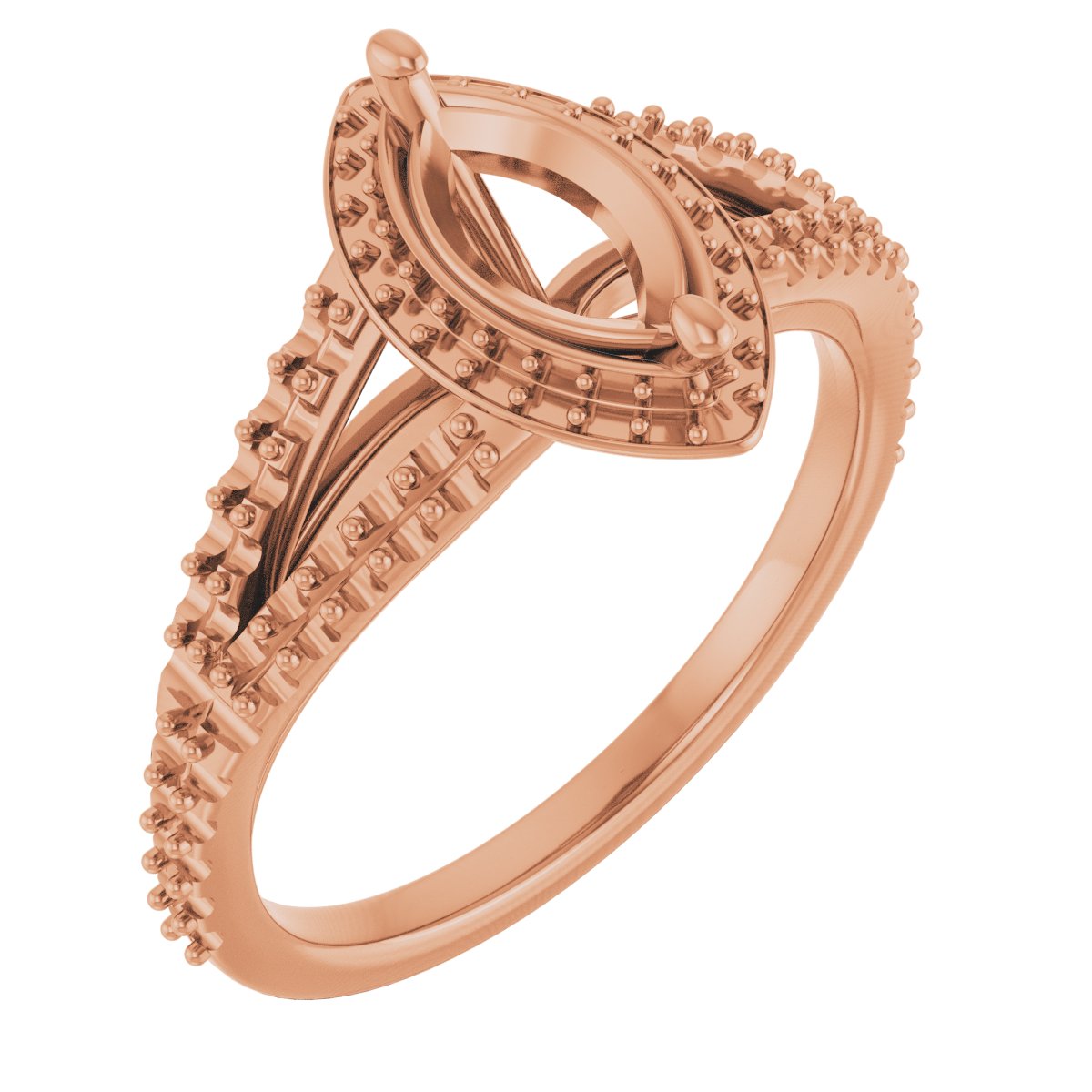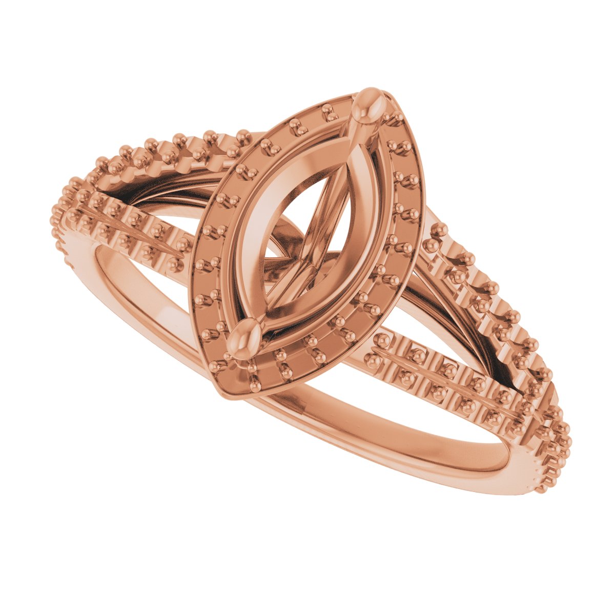 Engagement Ring / Unset / 14K Rose / 9 X 4.5 Mm / Polished / Engagement Ring Mounting