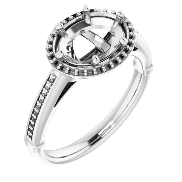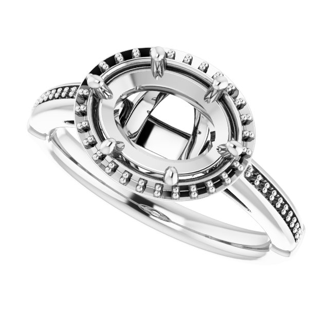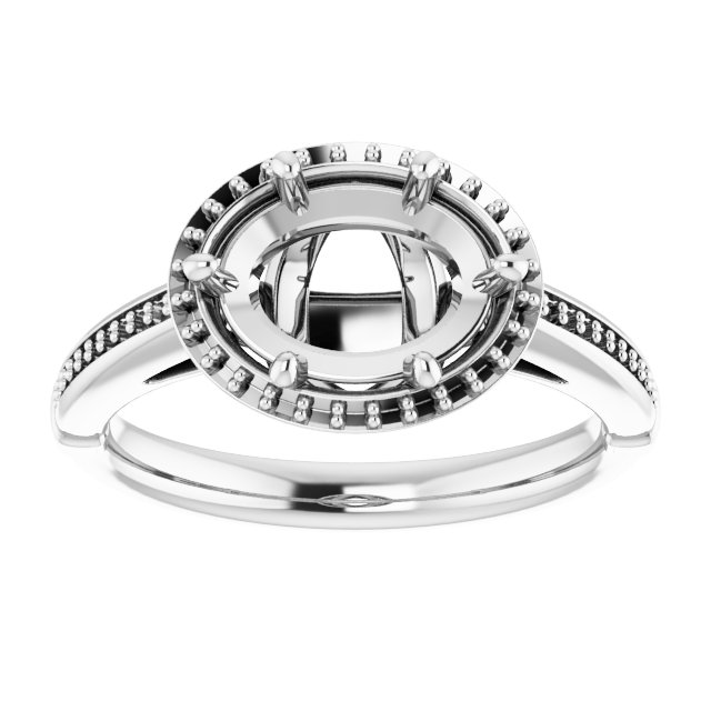 Ring / Semi-Set / 14K White / 9 X 7 Mm / Polished / Ring Mounting / G-H SI1