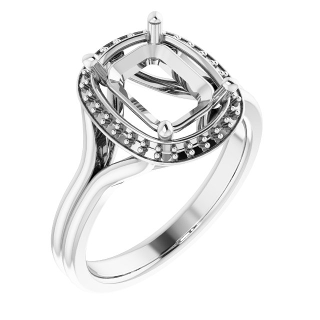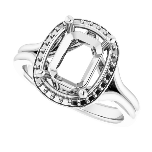 Ring / Semi-Set / 14K White / 9 X 7 Mm / Polished / Ring Mounting / G-H SI1