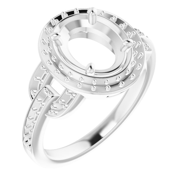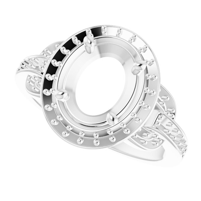 Ring / Semi-Set / 14K White / 9 X 7 Mm / Polished / Ring Mounting / G-H SI1