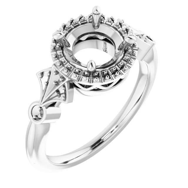 Ring / Semi-Set / 14K White / 7.4 Mm / Polished / Ring Mounting / G-H SI1