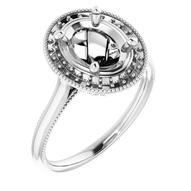 Engagement Ring / Unset / 14K White / 9 X 7 Mm / Polished / Engagement Ring Mounting