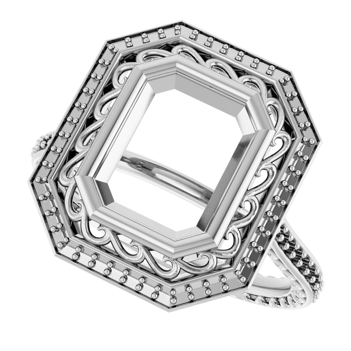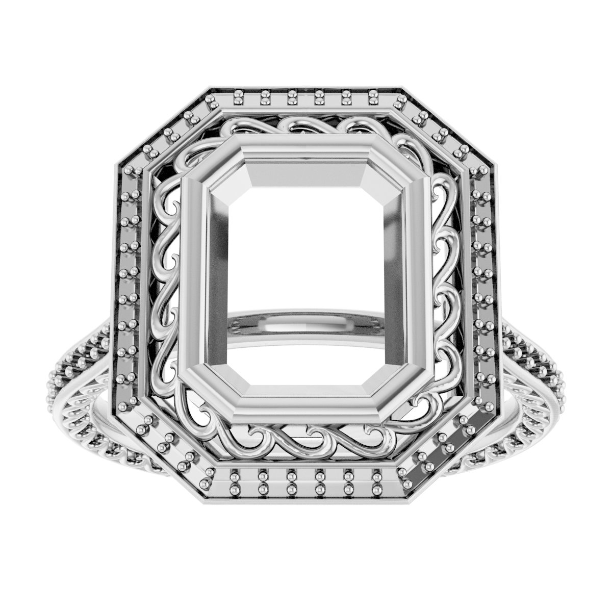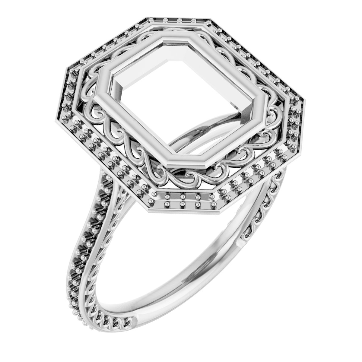 Engagement Ring / 14K White / Polished / Bezel-Set Halo-Style Engagement Ring Mounting