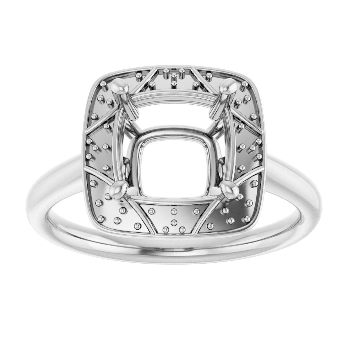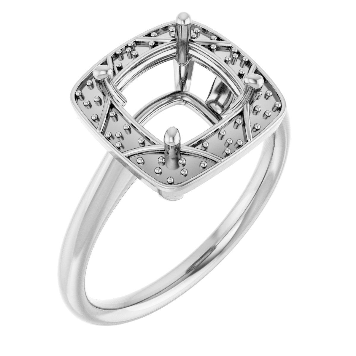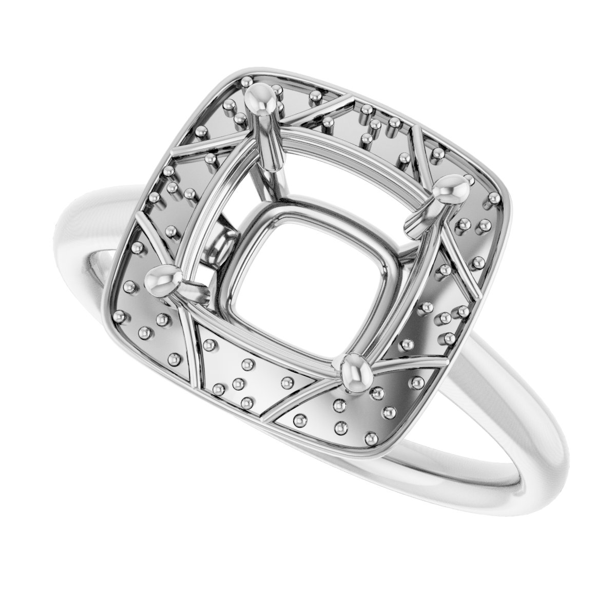 Engagement Ring / 14K White / Polished / Vintage-Inspired Halo-Style Engagement Ring Mounting