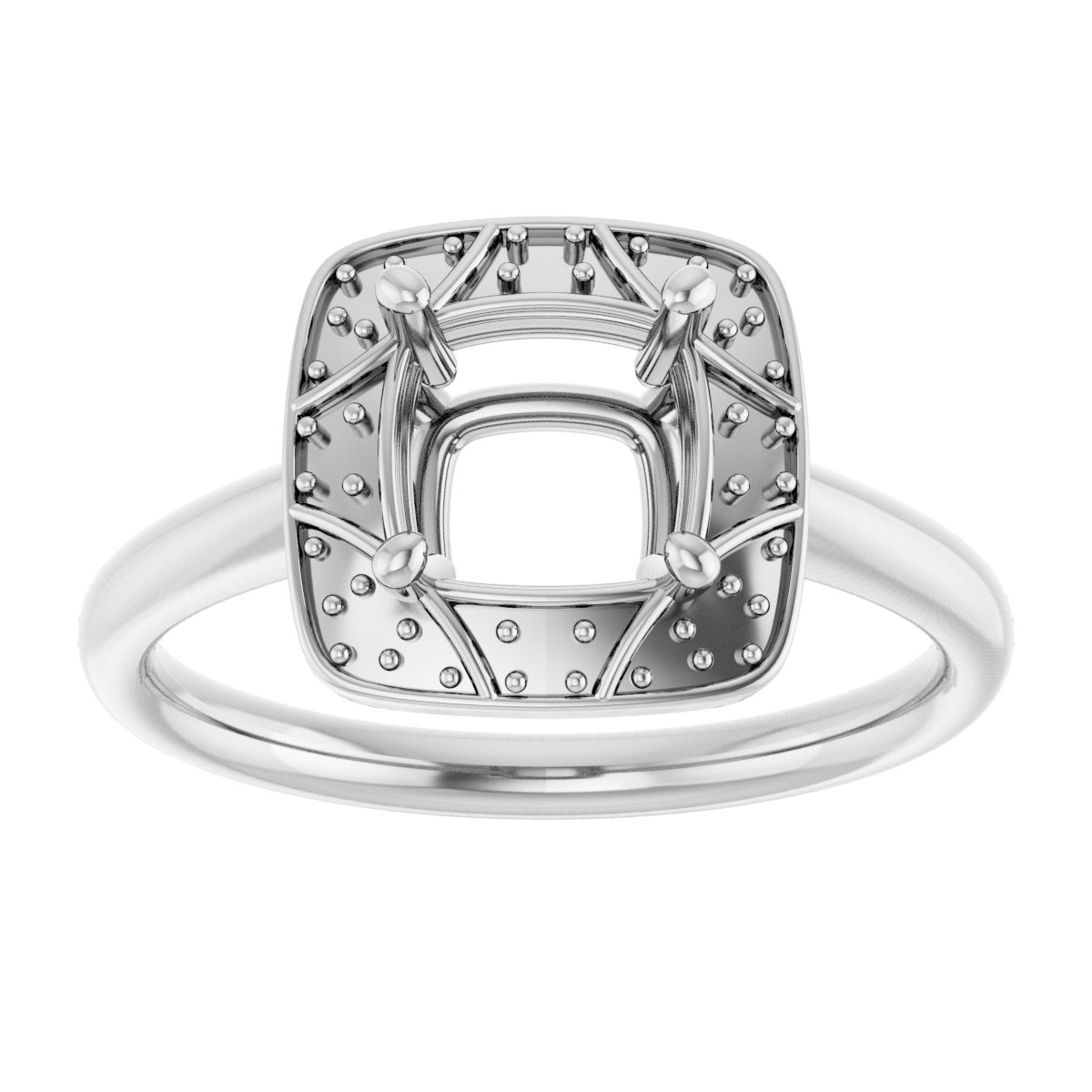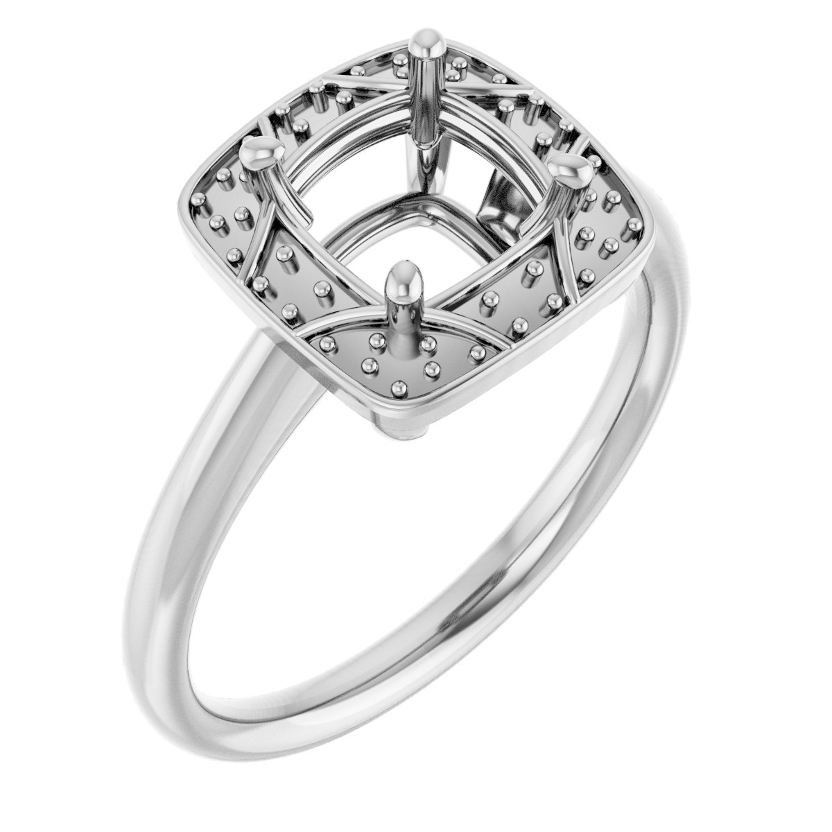 Engagement Ring / 14K White / Polished / Vintage-Inspired Halo-Style Engagement Ring Mounting