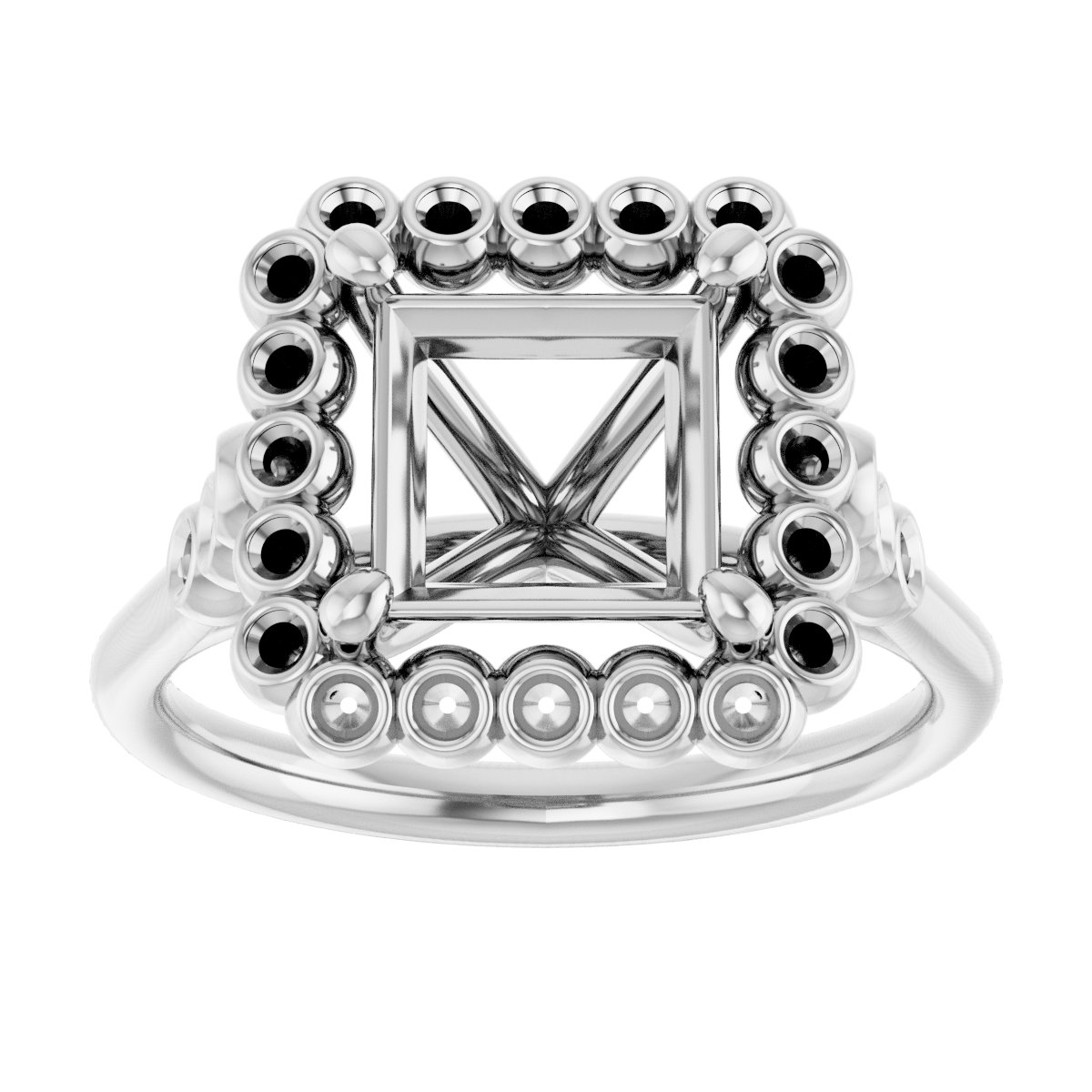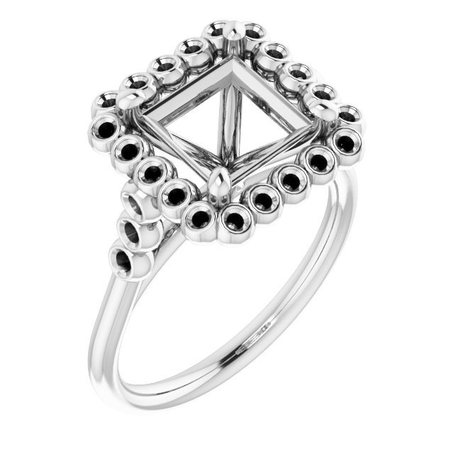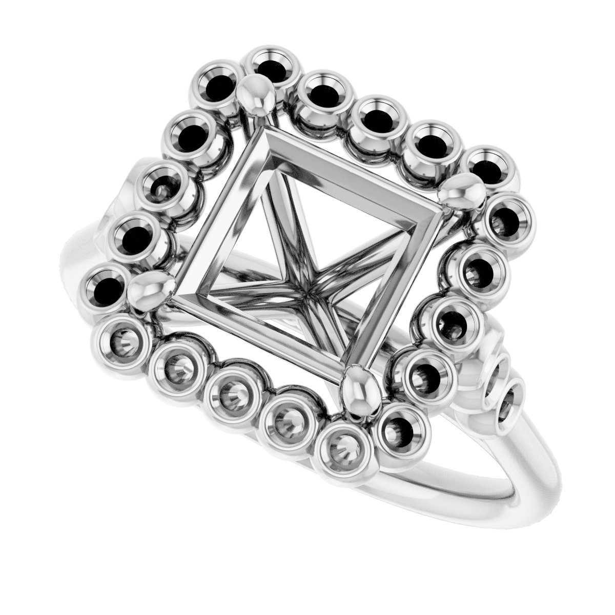 Engagement Ring / 14K White / Polished / Bezel-Set Halo-Style Engagement Ring Mounting