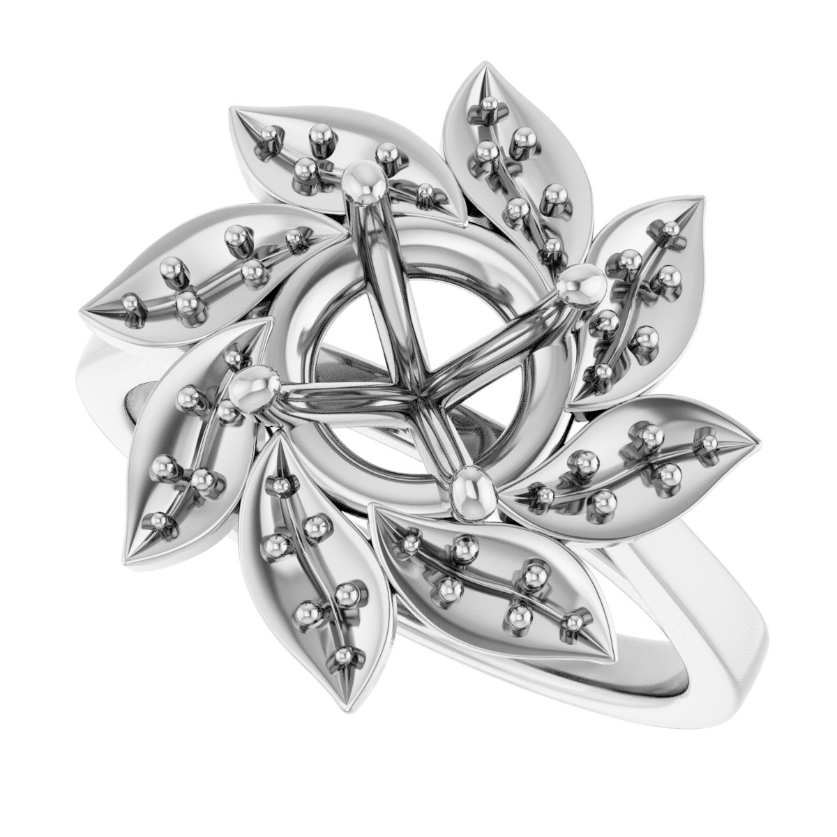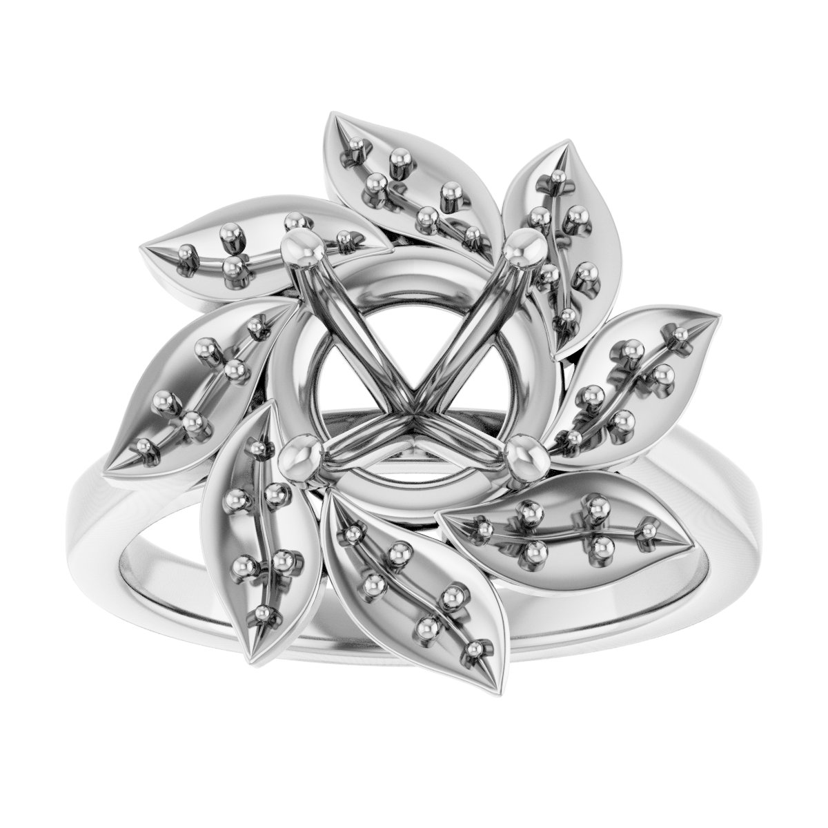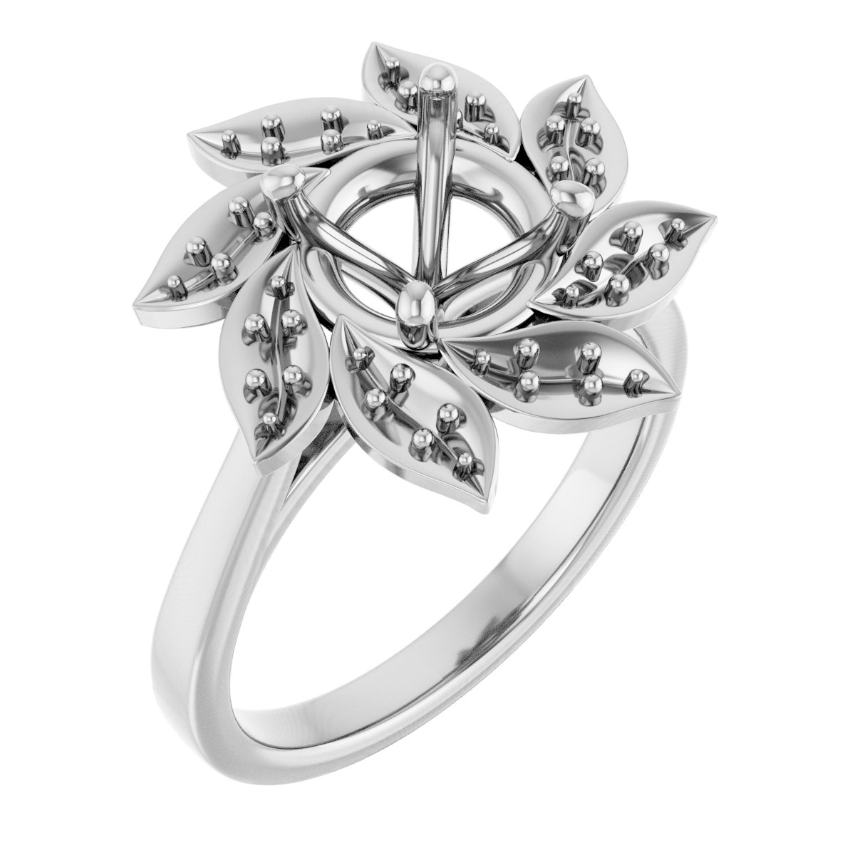 Engagement Ring / 14K White / Polished / Floral Halo-Style Engagement Ring Mounting