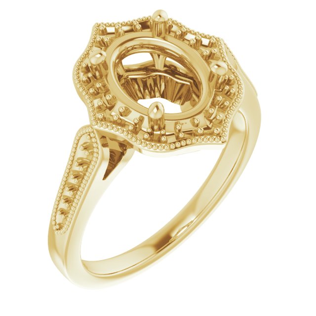Ring / Semi-Set / 14K Yellow / 9 X 7 Mm / Polished / Ring Mounting / G-H SI1
