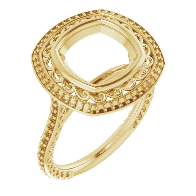 Engagement Ring / 14K Yellow / Polished / Bezel-Set Halo-Style Engagement Ring Mounting