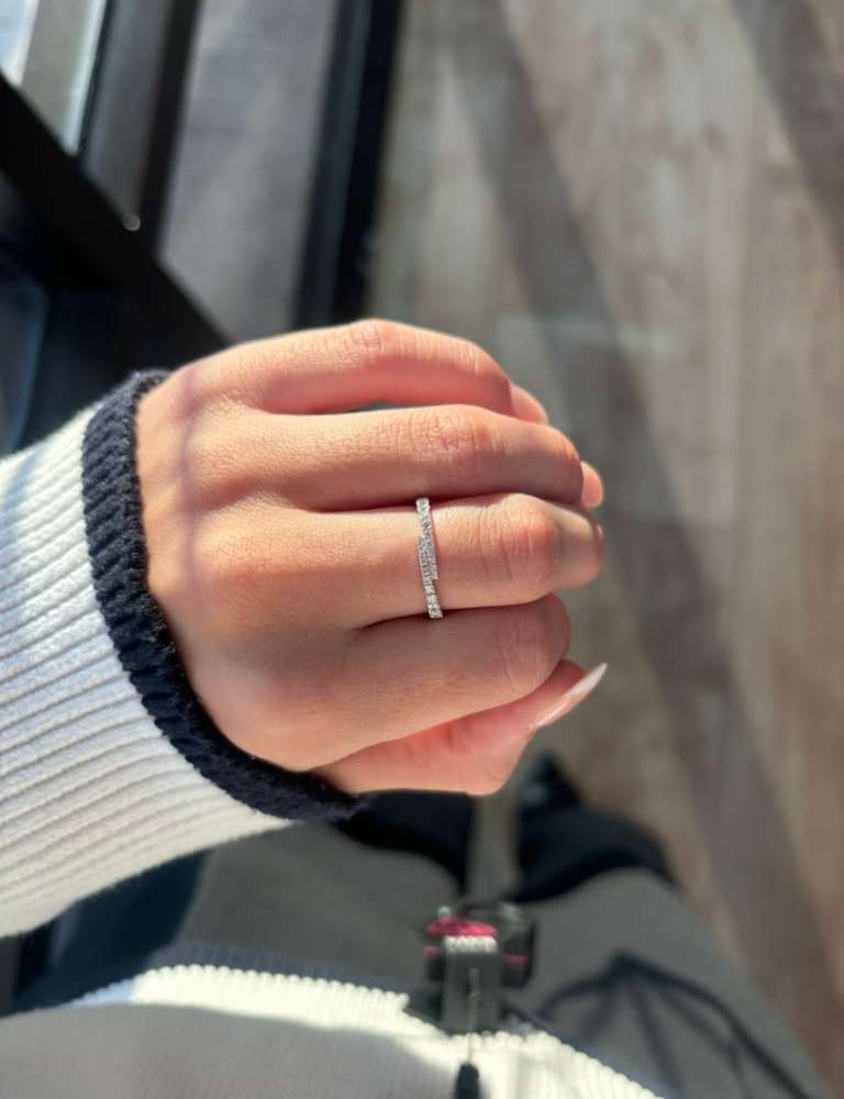 This elegant 14K white gold ring features a mesmerizing cross over design adorned with a total diamond weight of .31 carats, perfect for celebrating a half anniversary.