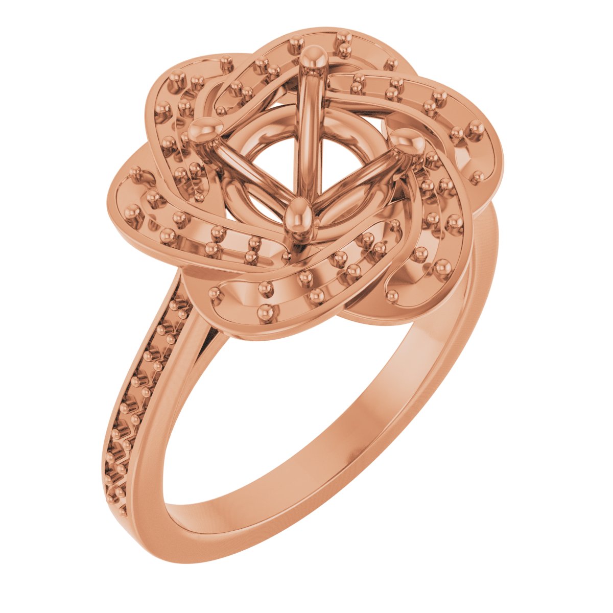Engagement Ring / Semi-Set / 18K Rose / 7.4 Mm / Polished / Floral Halo-Style Engagement Ring Mounting / G-H SI1