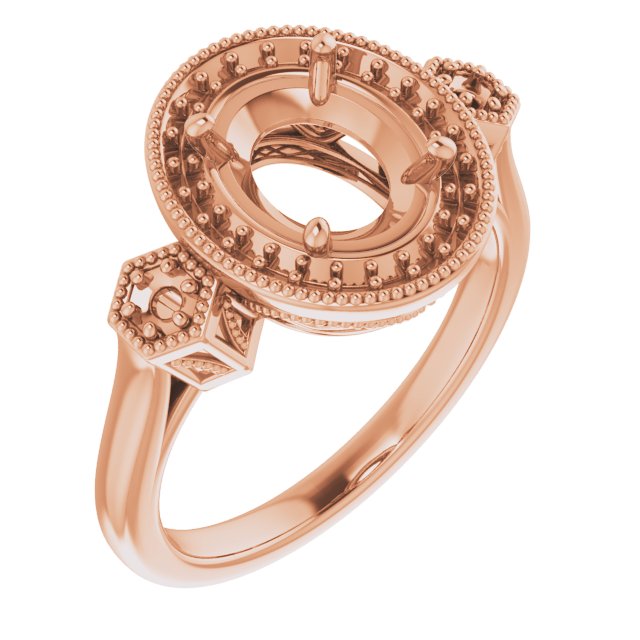 Ring / Semi-Set / 18K Rose / 9 X 7 Mm / Polished / Ring Mounting / G-H SI1