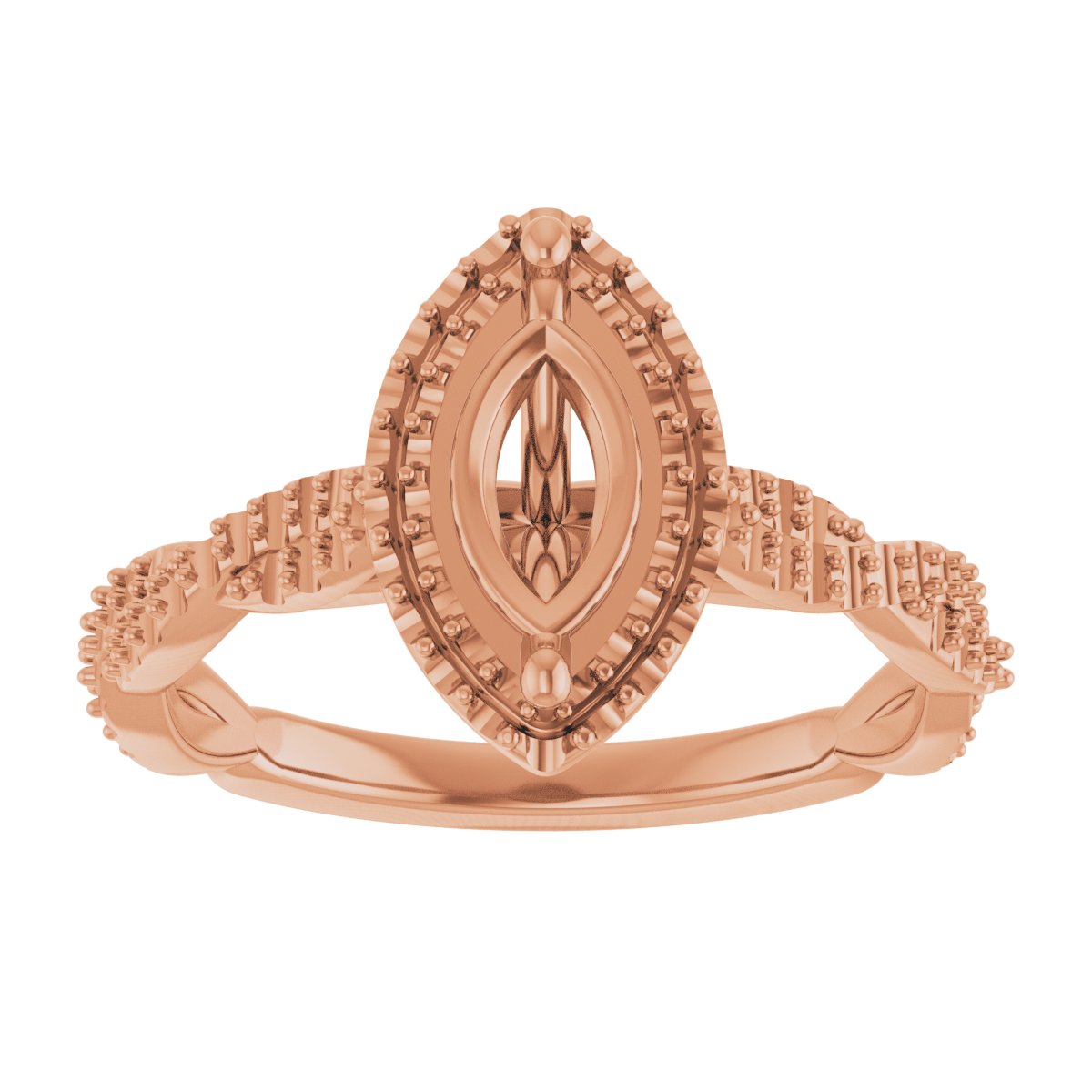 Engagement Ring / Unset / 18K Rose / 9 X 4.5 Mm / Polished / Engagement Ring Mounting