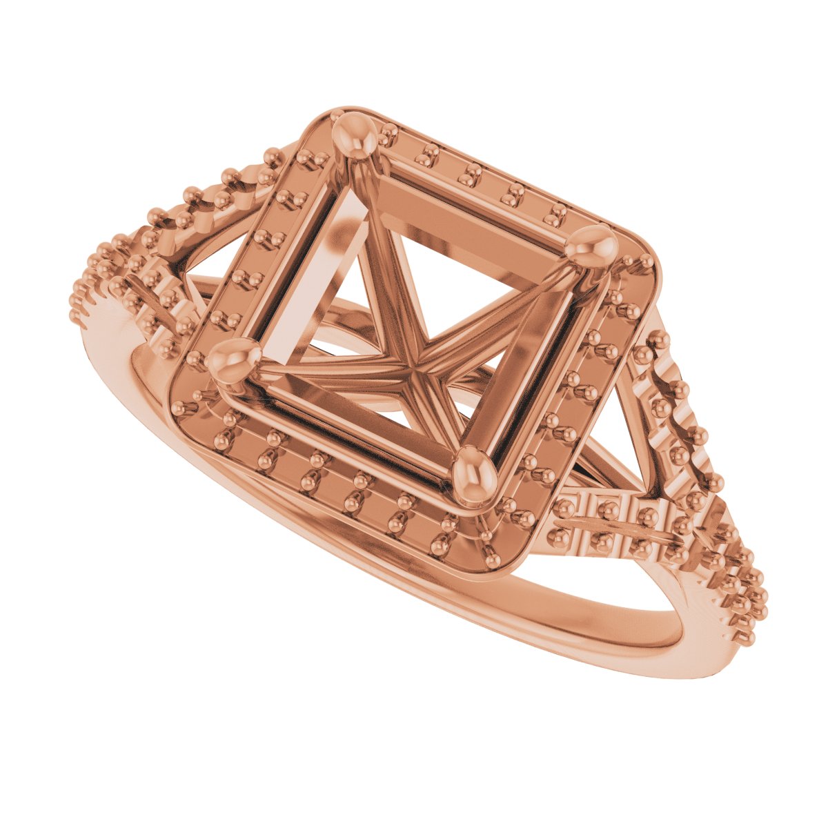Engagement Ring / Unset / 18K Rose / 6.5 X 6.5 Mm / Polished / Engagement Ring Mounting