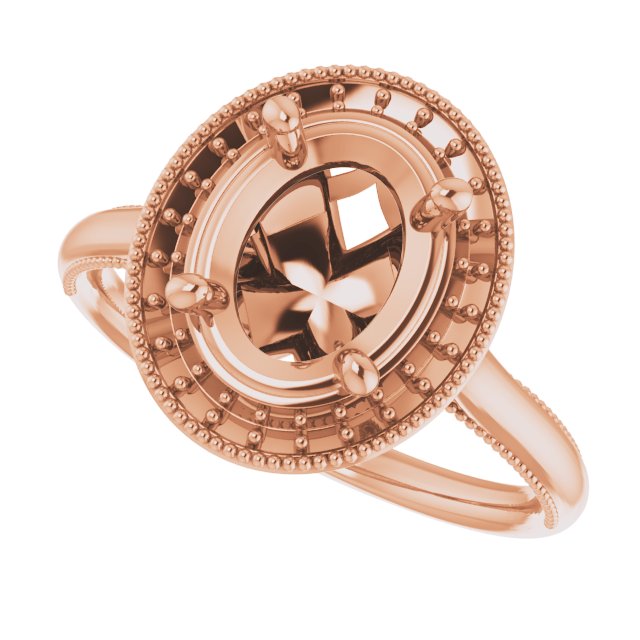 Engagement Ring / Unset / 18K Rose / 9 X 7 Mm / Polished / Engagement Ring Mounting