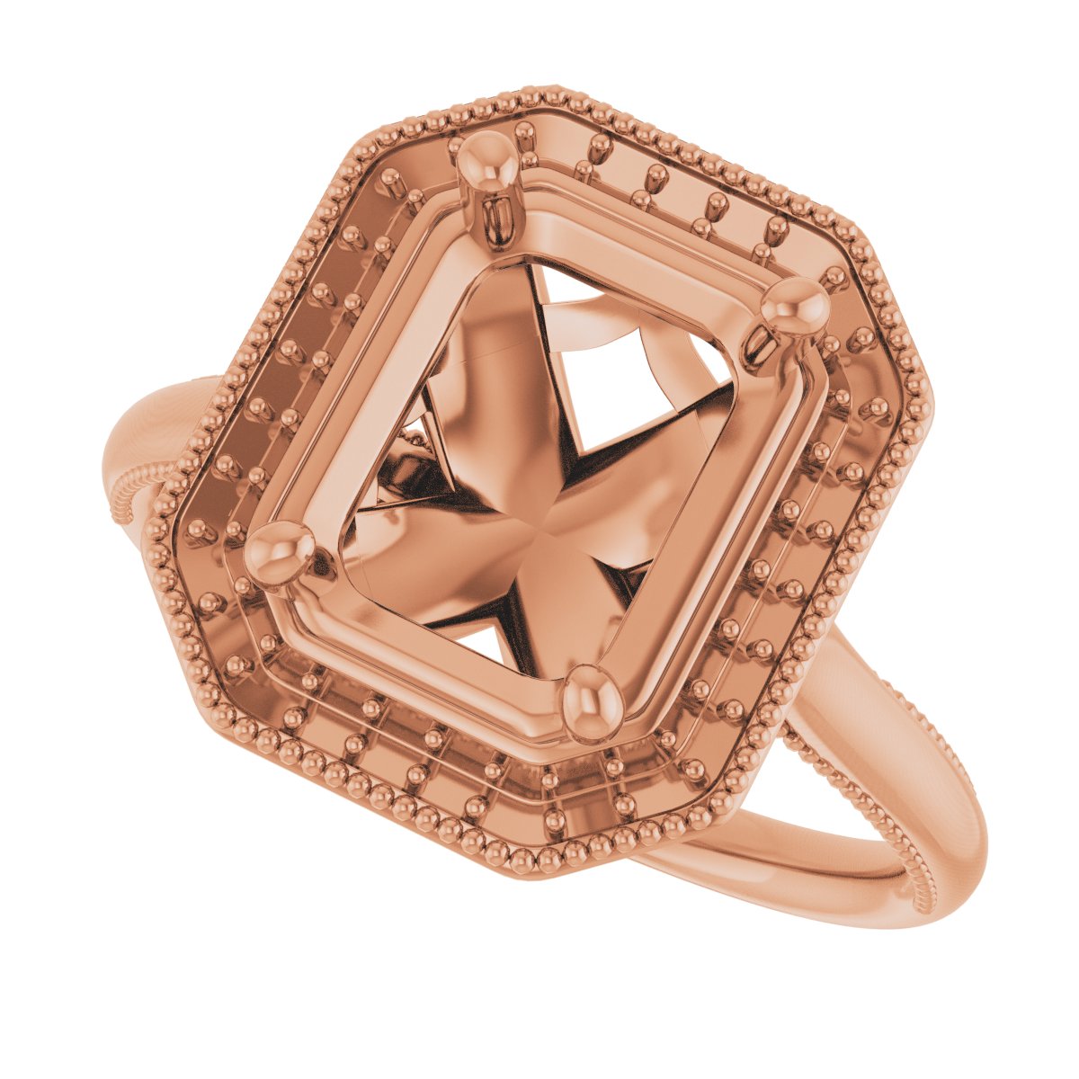 Engagement Ring / Unset / 18K Rose / 9 X 7 Mm / Polished / Engagement Ring Mounting