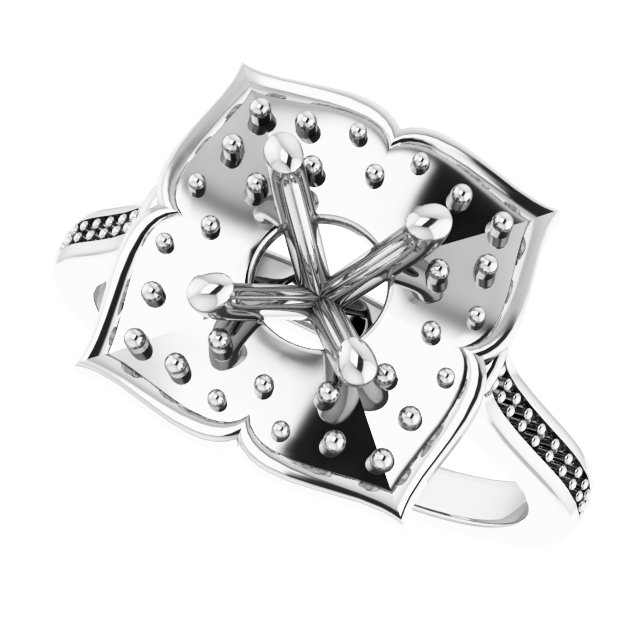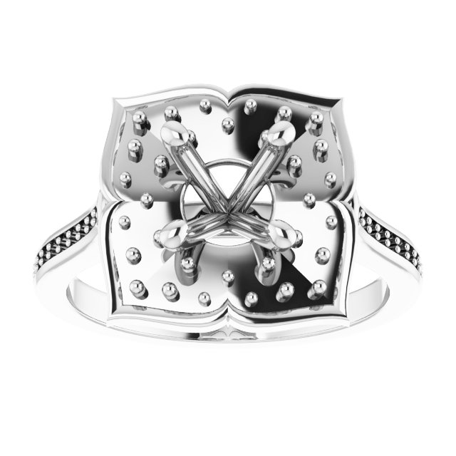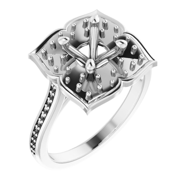 Engagement Ring / 18K White / Polished / Floral Halo-Style Engagement Ring Mounting