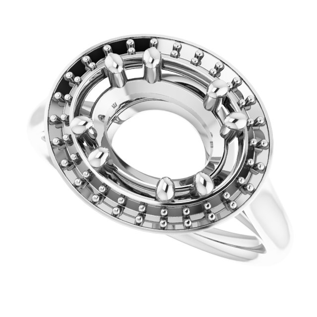 Ring / Semi-Set / 18K White / 10 X 8 Mm / Polished / Ring Mounting / G-H SI1