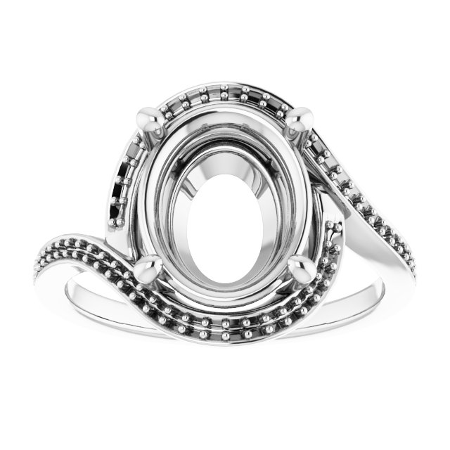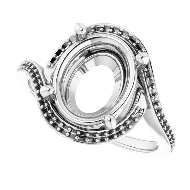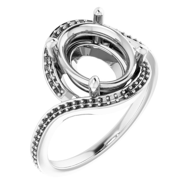 Engagement Ring / Semi-Set / 18K White / 11 X 9 Mm / Polished / Bypass Halo-Style Engagement Ring Mounting / G-H SI1