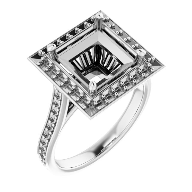 Ring / Semi-Set / 18K White / 8 X 8 Mm / Polished / Ring Mounting / G-H SI1