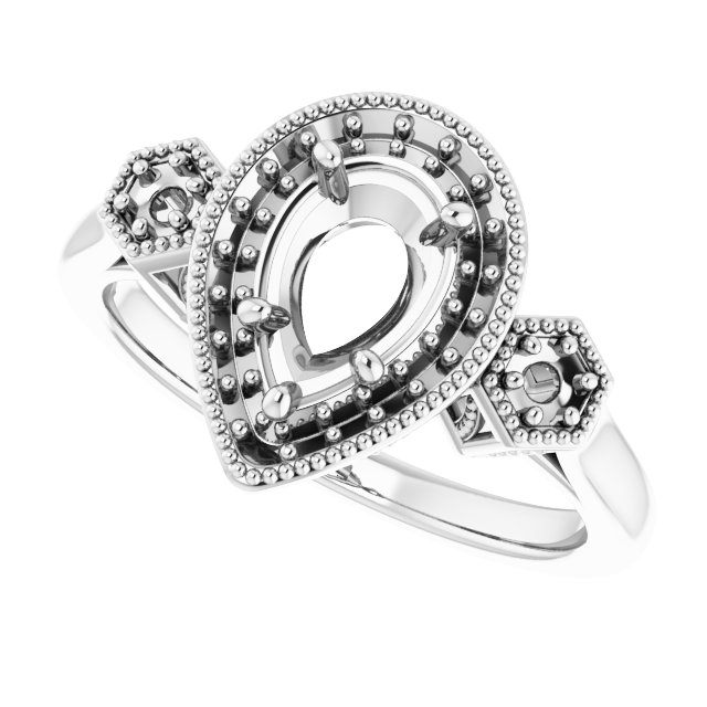 Ring / Semi-Set / 18K White / 8 X 5 Mm / Polished / Ring Mounting / G-H SI1
