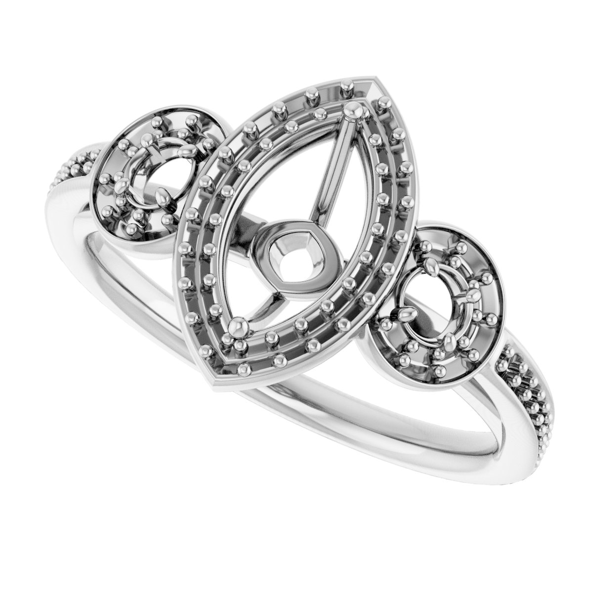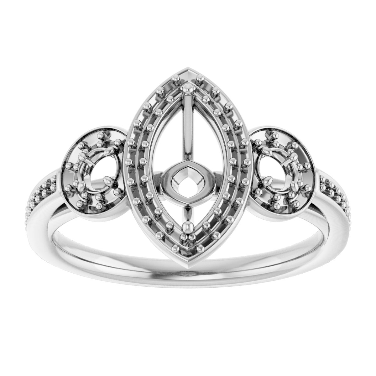 Engagement Ring / Semi-Set / 18K White / 8 X 4 Mm / Polished / Engagement Ring Mounting / G-H SI1