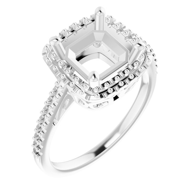 Ring / Semi-Set / 18K White / 8 X 8 Mm / Polished / Ring Mounting / G-H SI1