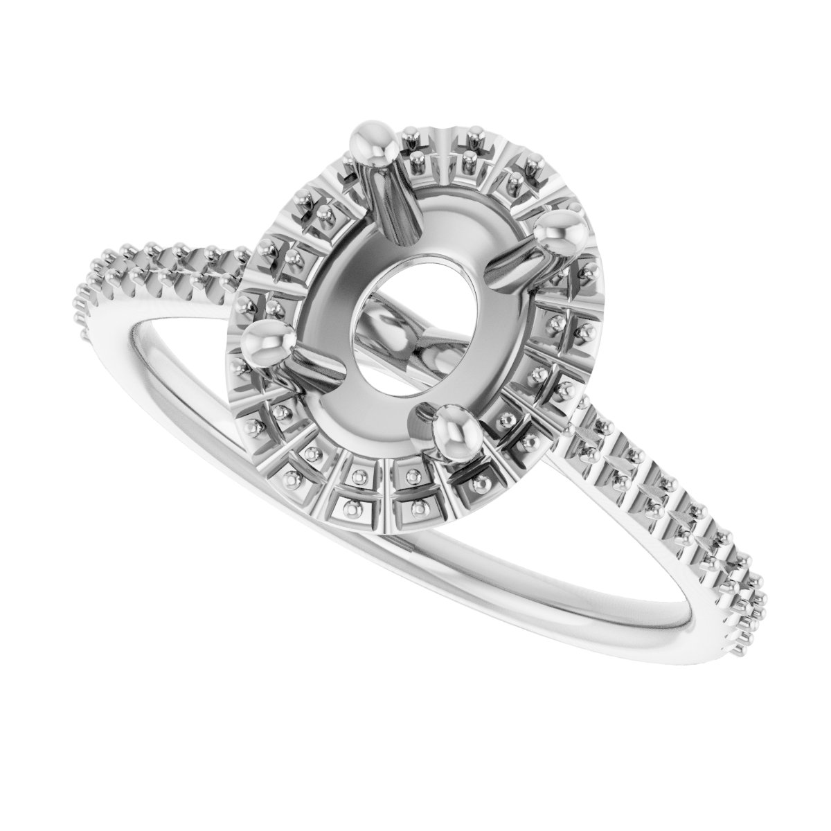 Engagement Ring / Semi-Set / 18K White / 8 X 6 Mm / Polished / Engagement Ring Mounting / G-H SI1