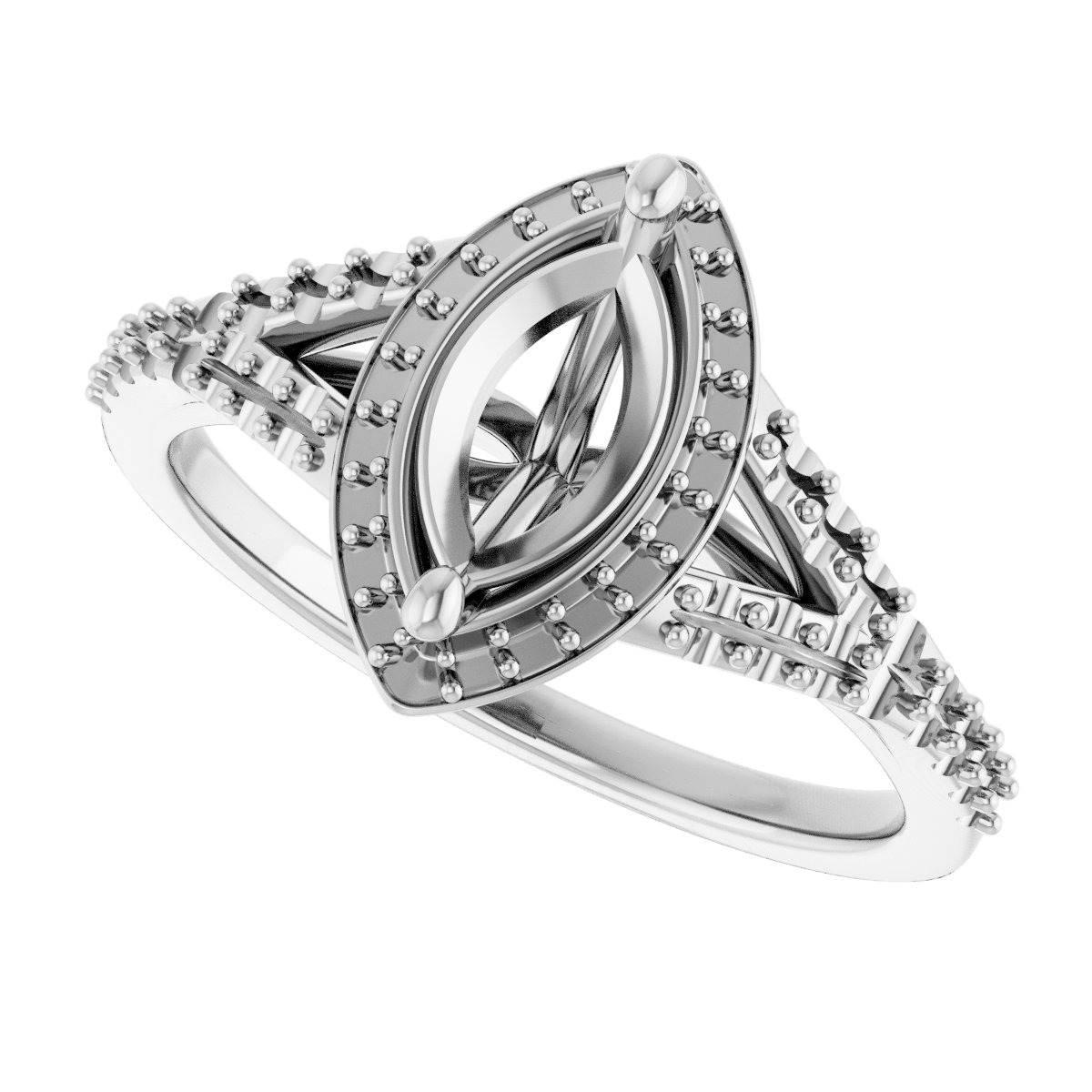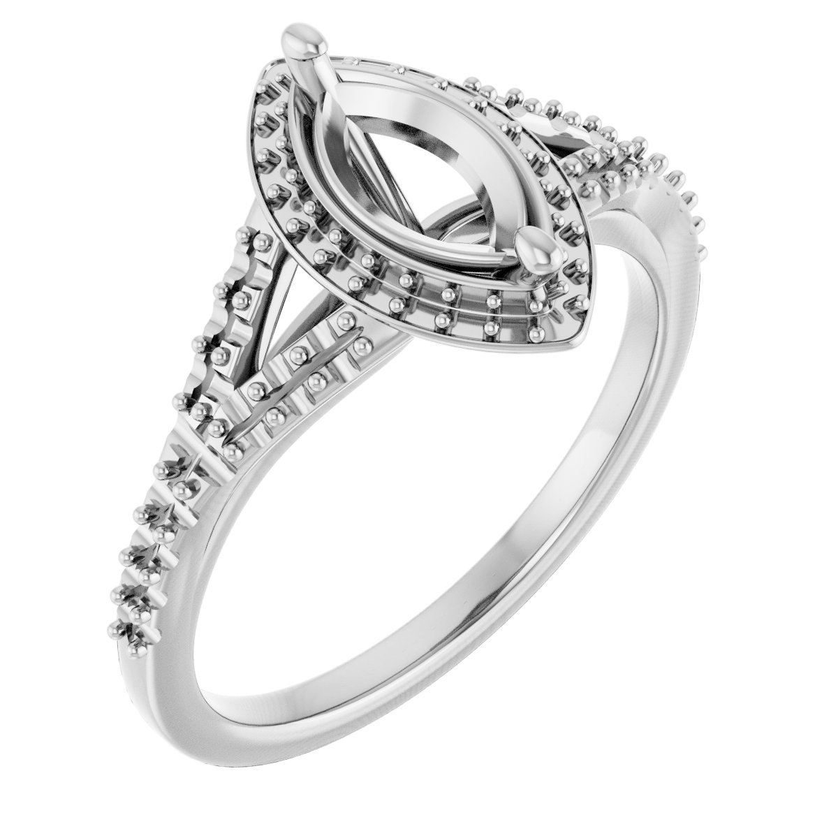 Engagement Ring / Unset / 18K White / 9 X 4.5 Mm / Polished / Engagement Ring Mounting