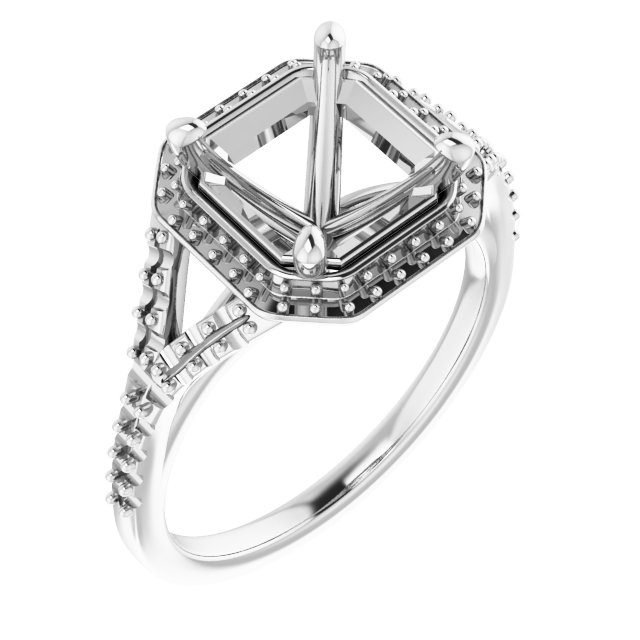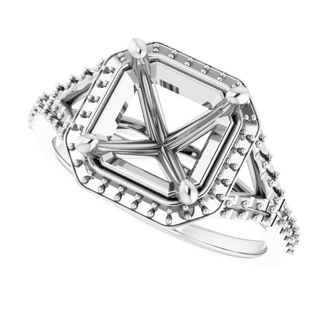 Engagement Ring / Unset / 18K White / 8 X 8 Mm / Polished / Engagement Ring Mounting