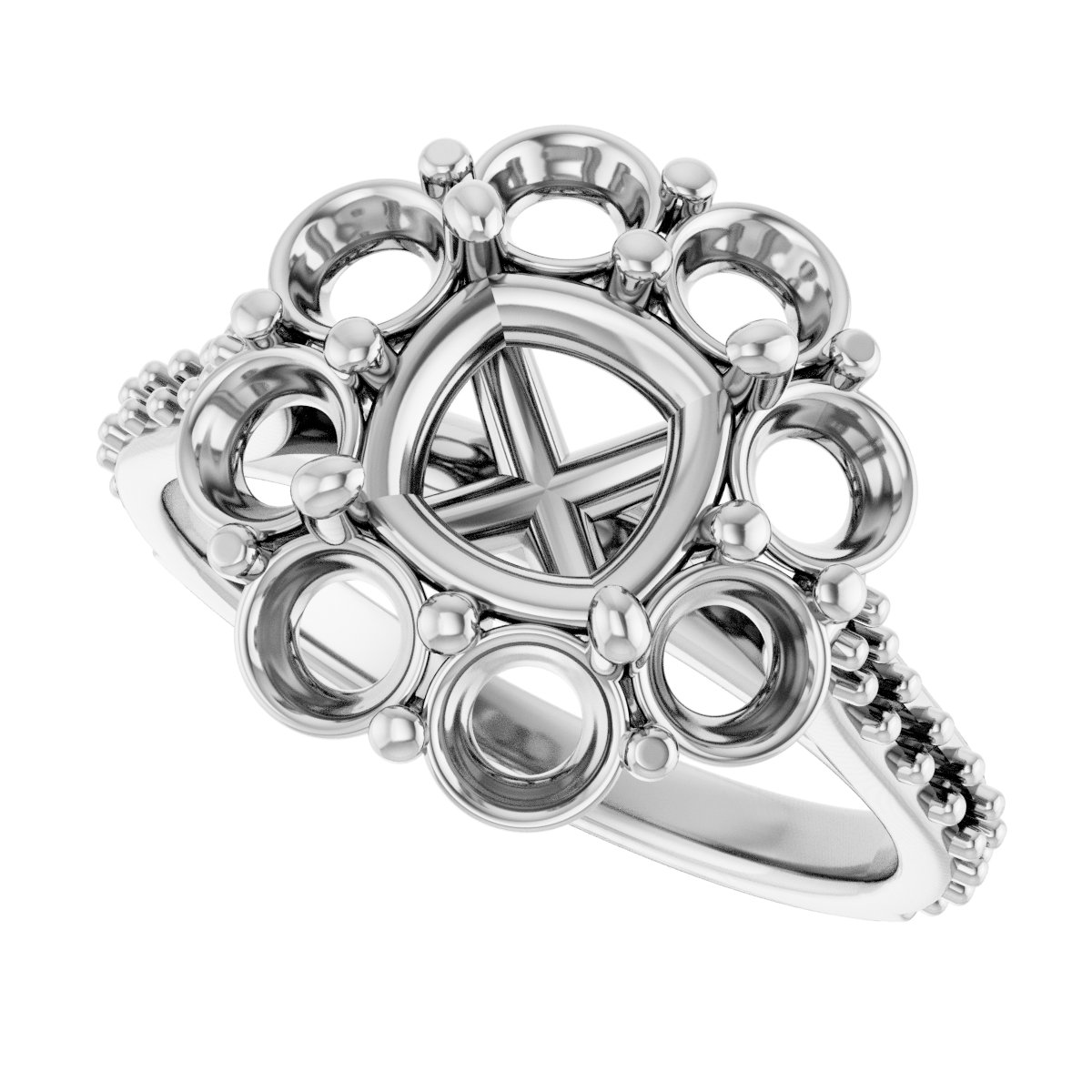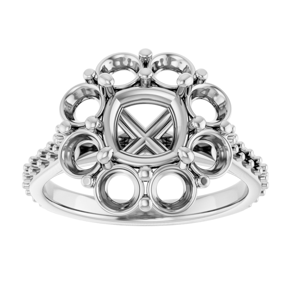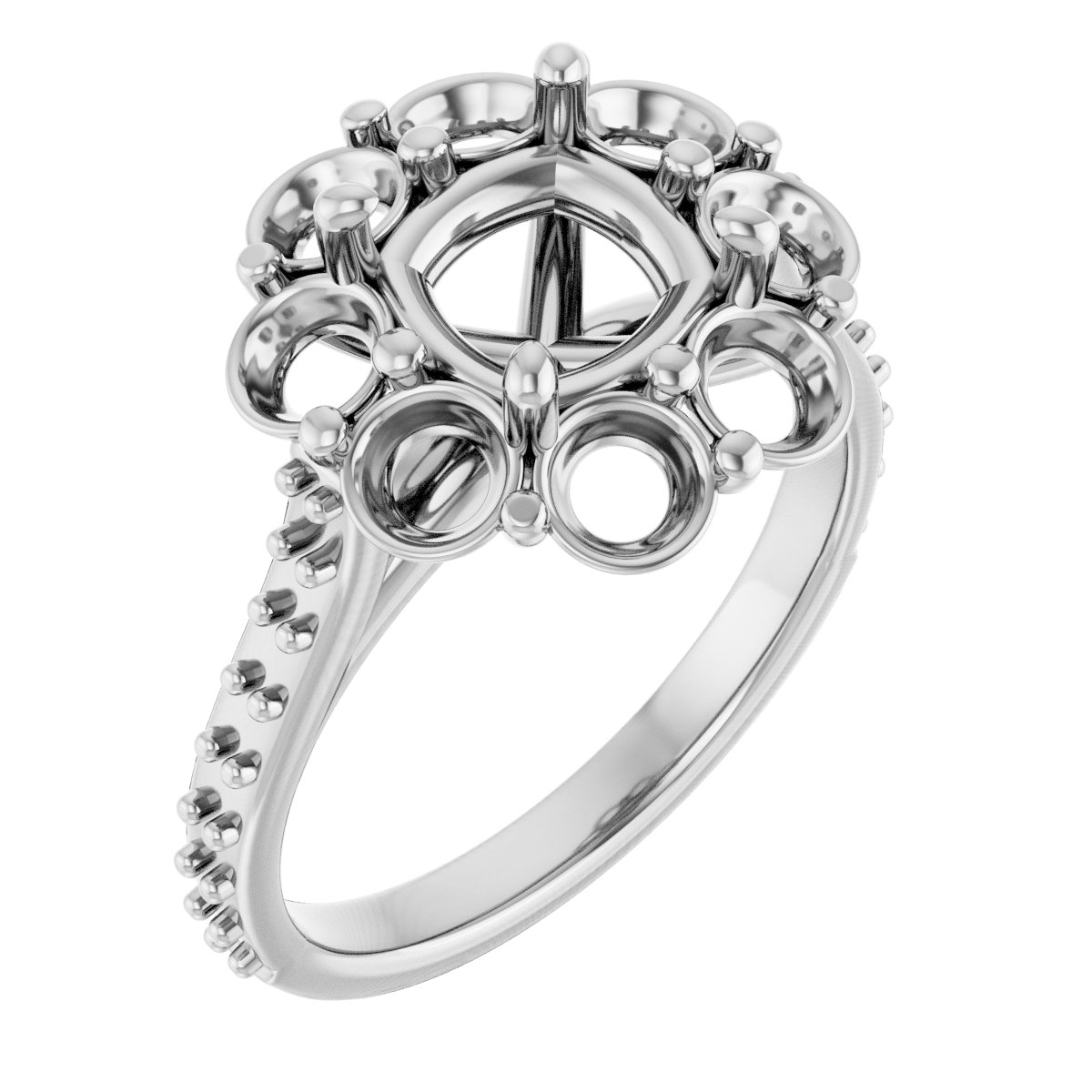Engagement Ring / 18K White / Polished / Halo-Style Engagement Ring Mounting