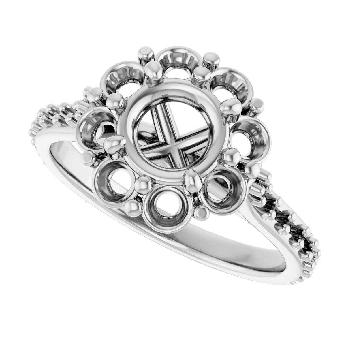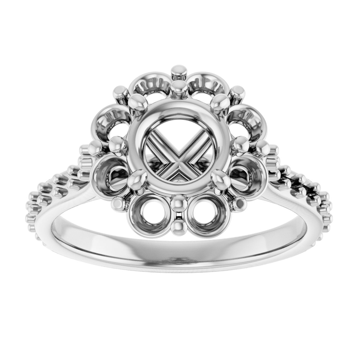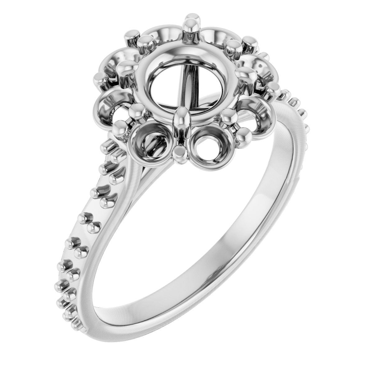 Engagement Ring / 18K White / Polished / Halo-Style Engagement Ring Mounting