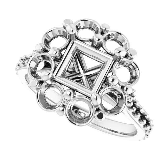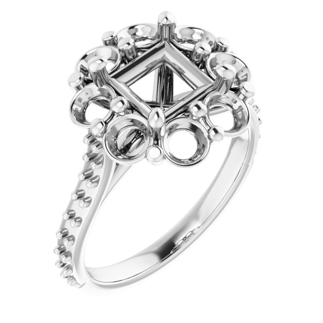 Engagement Ring / 18K White / Polished / Halo-Style Engagement Ring Mounting
