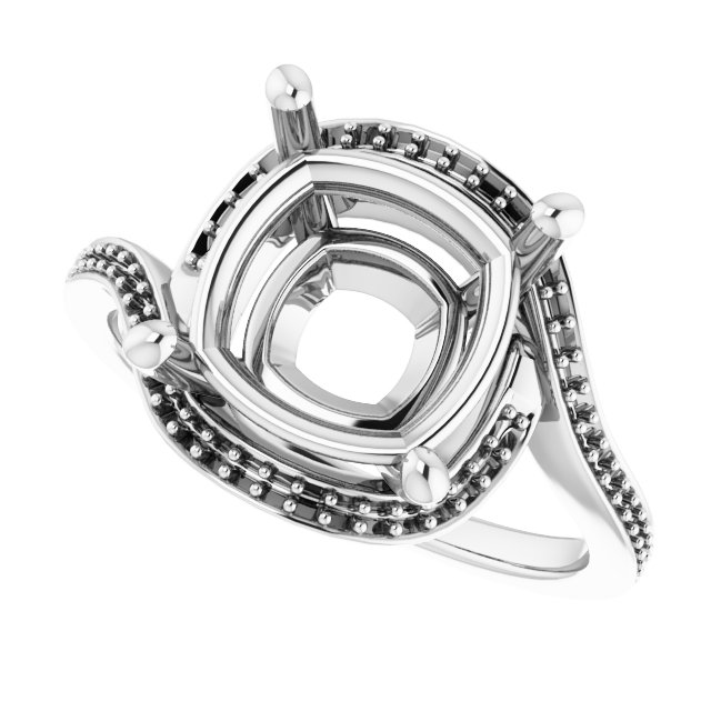 Engagement Ring / Unset / 18K White / 10 X 10 Mm / Polished / Bypass Halo-Style Engagement Ring Mounting