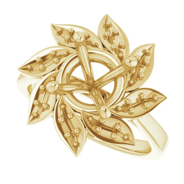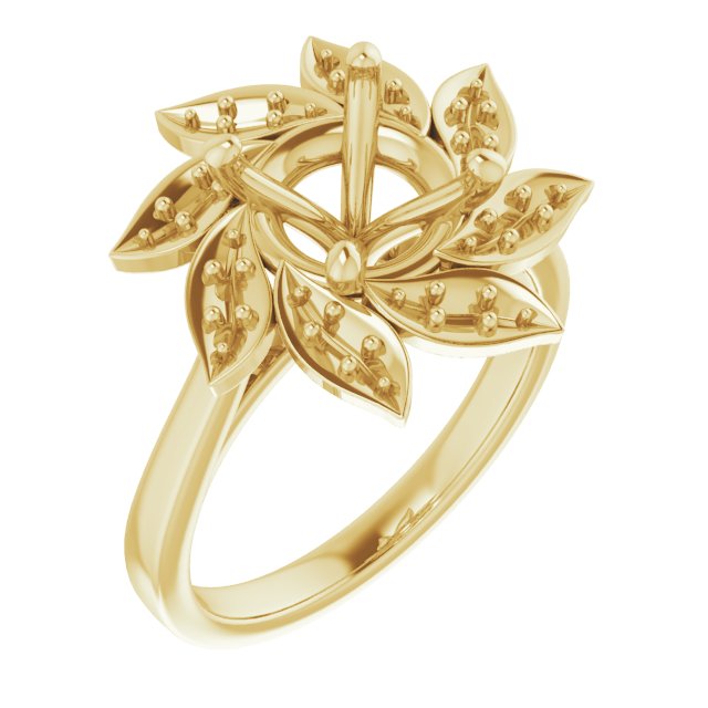 Engagement Ring / Semi-Set / 18K Yellow / 6.5 X 6.5 Mm / Polished / Floral Halo-Style Engagement Ring Mounting / G-H SI1