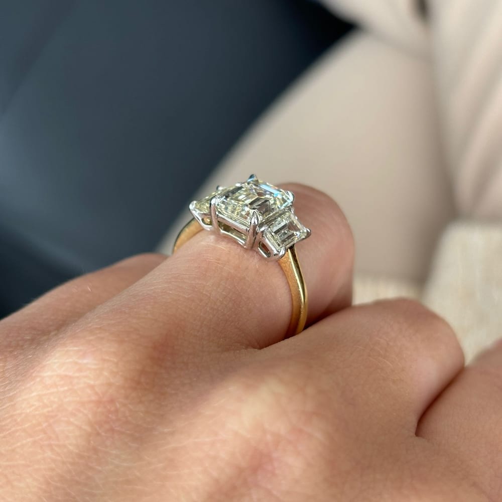 18kyg Diamond Ring 2.33ct Emerald M VS2 / Side Diamonds 1.07ct