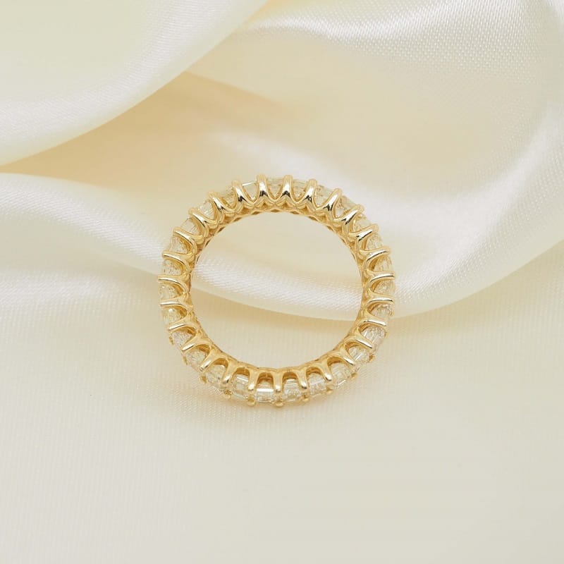 4.19 ct Emerald Cut Diamond Full Circle Eternity 18K Yellow Gold Band