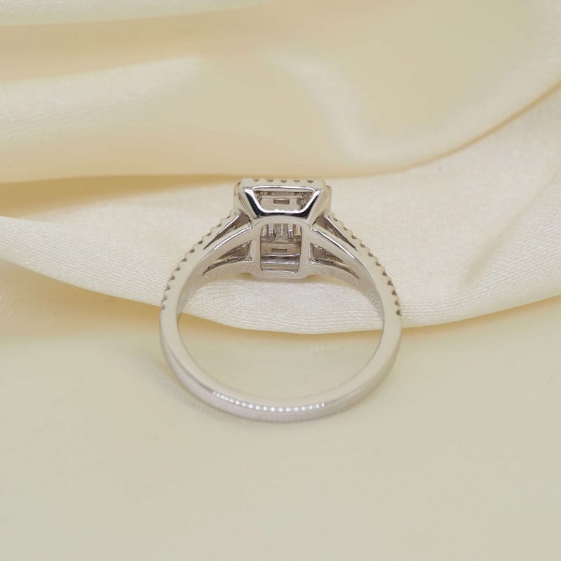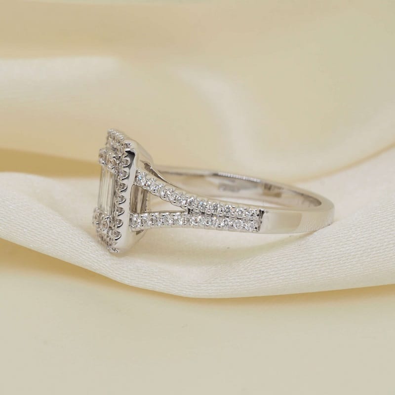 Emerald & Round Briliant Cut Diamonds set in 14K White Gold Engagement Ring