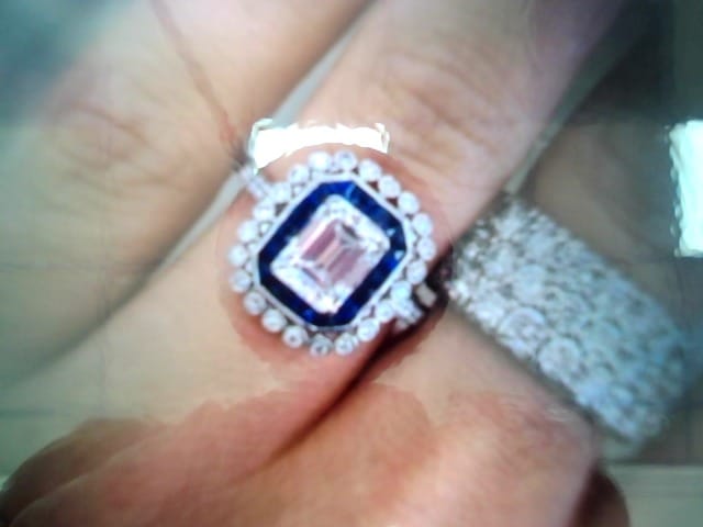 Platinum Nat Dia. Ring  1.54ct D VS1 0.28round 1.10ct Sapphire